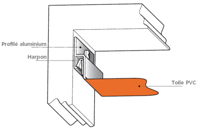 Mais contrairement aux faux plafonds suspendus classiques, notre système de plafonds tendus se fixe exclusivement au périmètre, principalement aux murs (dans certains cas au plafond existant) à hauteur choisie, à l'aide d'un dispositif d'enclenchement spécialement conçu à cet effet, et toujours équipé d'un blocage de sécurité.